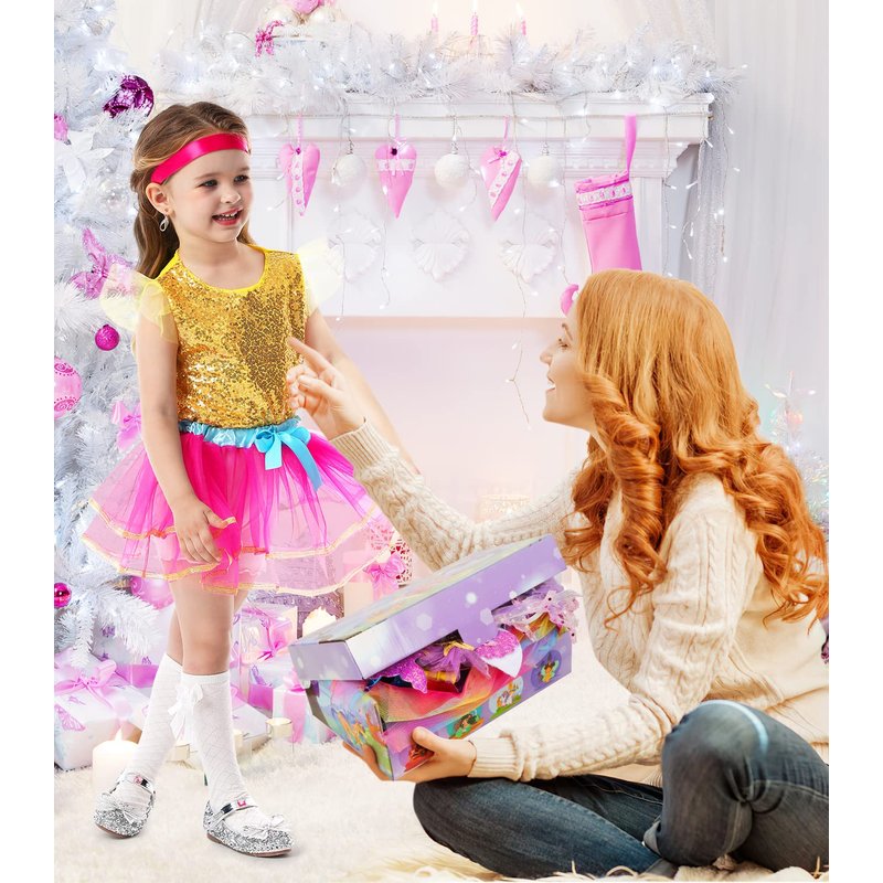 - 👗【Dress up Clothes for Little Girls Set】: All dress up clothes for little girls are made of prime polyester with stretchy elastic waistband for most comfort fit. Unicorn tutu with unique detachable colorful tail. Tops are feature velcro closure for easily on and off,skirt have layers of light gauze. Attracts your toddler girl deeply, she can't wait to put on these girls dress up costumes to be a beautiful princess.