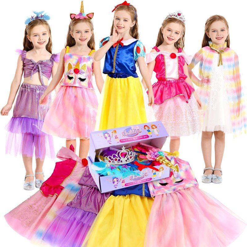 Chillife Princess Dress up for Girls, Kids Dress Up & Pretend Play With Princess Dresses Crown Cape for Little Girls, Princess Dresses for Girls Toddler Age 3-6 Year Old