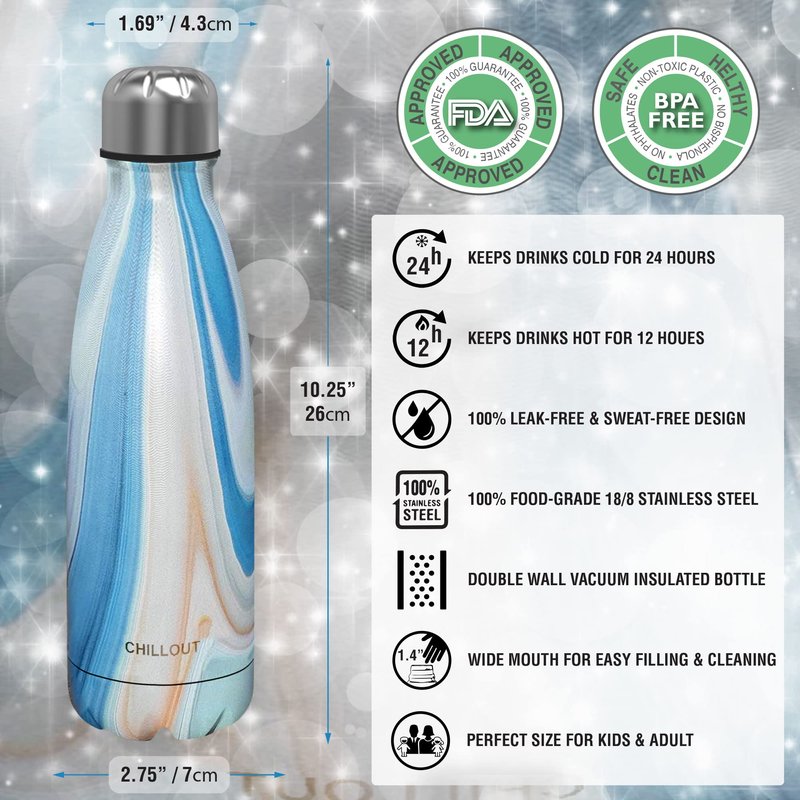 - 5-year Warranty & 100% Satisfaction: CHILLOUT LIFE has been giving you the very best drinkware and thermal products for years and we offer a 5-year warranty so that you can continue to enjoy this amazing product. If you are not positively thrilled with our premium stainless steel bottle, just let us know and we will make things right for you - hassle free!