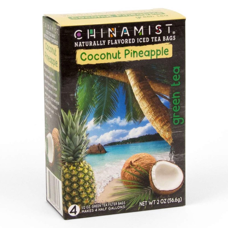 China Mist Iced Tea – Coconut Pineapple Green Tea Infusion – Refreshing and Delicious – Each Tea Bag Yields 1/2 Gallon – 4 bags.