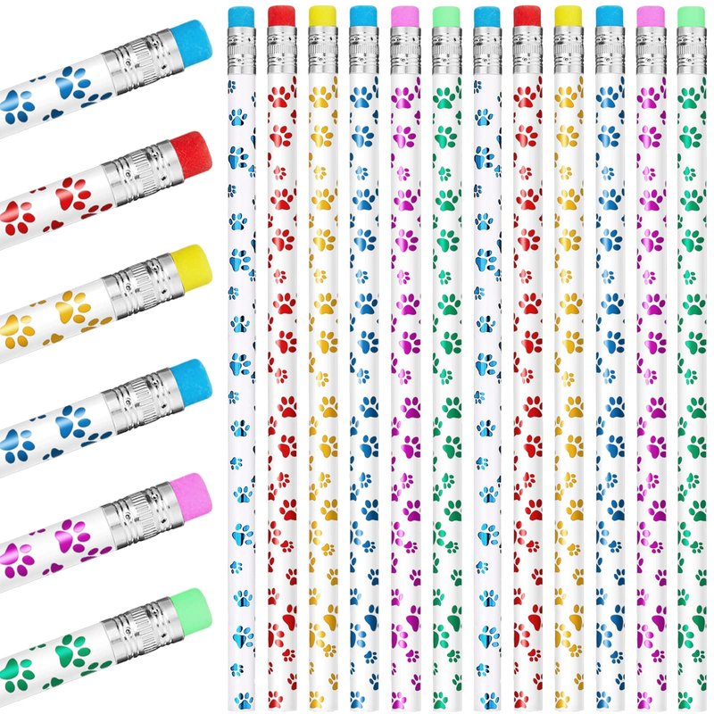 Chinco Paw Print Pencils Dog Paw Pencils Wooden Writing Novelty Pencils with Erasers for Kids Doggy Party Favors Welcome Back to School Party Supplies, 6 Colors(36 Pieces)