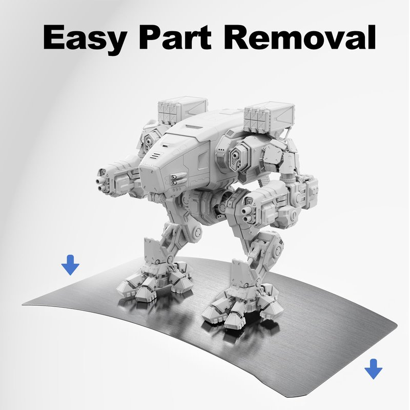 Why Choose This Flexible Build Plate? 1.Bend to Remove the Model After printing, the model can be easily removed by bending the flexible steel plate. You don’t need to use tools to remove, reducing unnecessary scratch and damage. 2.Flex Stainless Steel The build platform plate is made of spring Stainless steel, strong and durable which can prevent deform. Installation Steps: 1.Please clean your printing platform with alcohol 2.Stick and compact the magnetic base on the printing platform plate 3.Let it sit for a while so it is fully seated 4.Install the steel build plate on the magnetic base 5.Reset the printer's level setting and start print