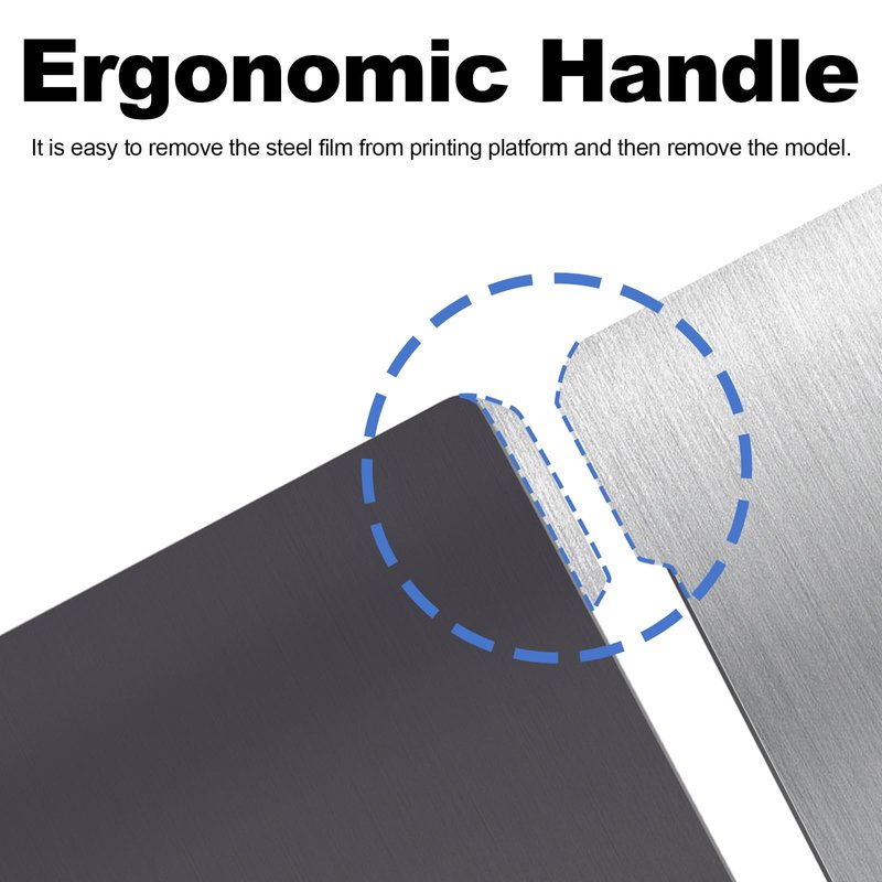 - Ergonomic Handle Design: The flexible spring steel magnetic build plate is designed with a handle, which makes it easy to install and remove the flex steel build platform.