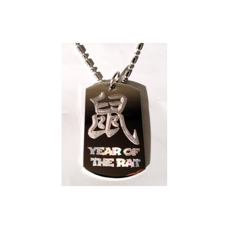 Chinese Calligraphy Character Year of the RAT Zodiac Logo Symbols - Military Dog Tag Luggage Tag Key Chain Metal Chain Necklace