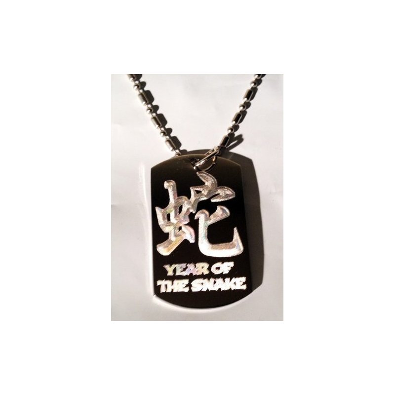 Chinese Calligraphy Character Year of the Snake Zodiac Logo Symbols - Military Dog Tag Luggage Tag Key Chain Metal Chain Necklace