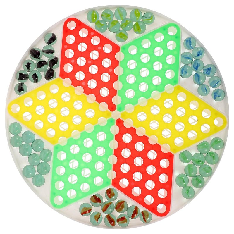 - 3 Color : This glass bead checkers board game has 3 camps: red, yellow and green. The first person to use the glass marbles to go to the opposite camp of the same color is the winner. creative and interesting