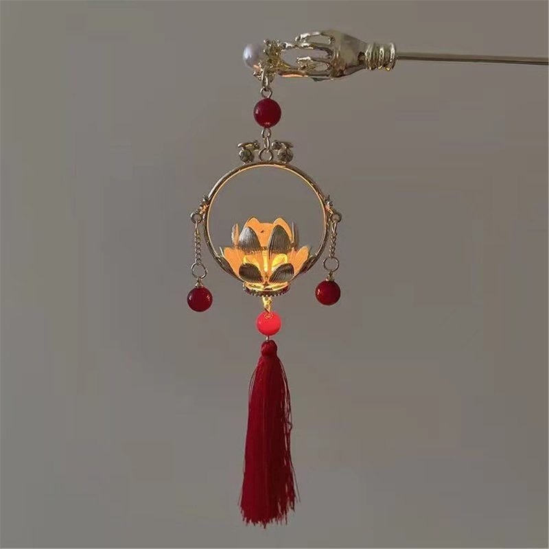 Chinese Hair Accessories Hair Stick Lantern Light Tassel Hairpins Coiled Hair Vintage Hair Bun Hair Pin for Women Red 1pc