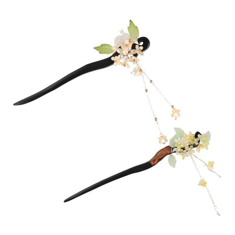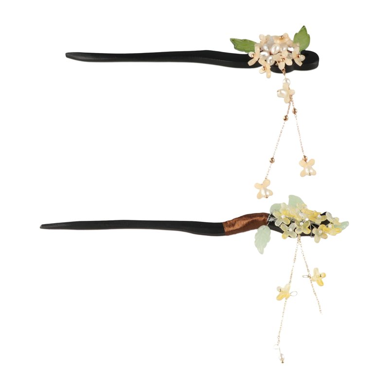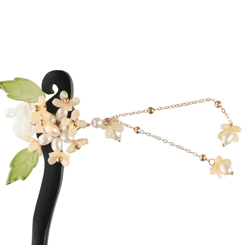 Chinese Traditional Flower Hair Sticks,Wooden Hairpin Hairstyle Design Tool Hairpin Tassel Pearl Osmanthus Cheongsam Flower Headwear