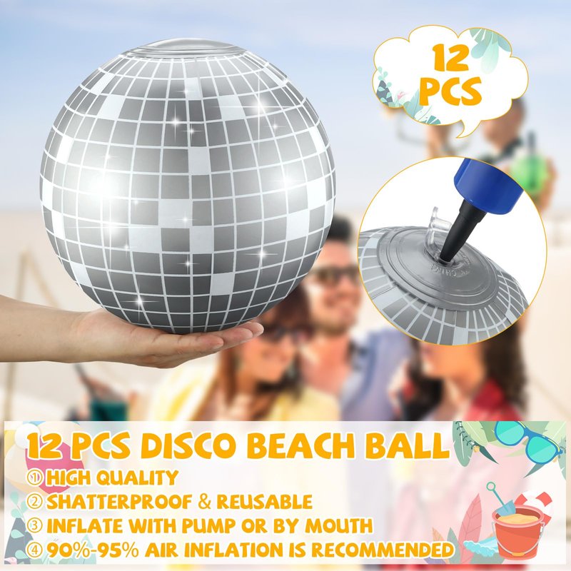 - Disco Shape Beach Ball: these silver disco ball beach balls are designed in disco shape with cool and eye catching appearance; With the leakproof valve, you can easily inflate and deflate the balls; The internal air of the beach ball can be released after playing, easy to store, bring you a pleasant use experience