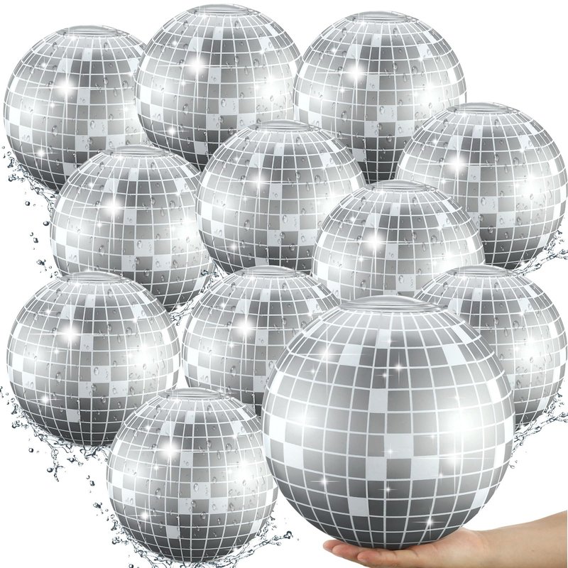 Features: These silver disco ball beach balls are suitable for pool parties, summer parties, beach parties, you can play with your friends and family to have a happy time together. While you play these disco beach balls on the beach with your friends, the relationship between you and friends will be enhanced while playing the ball game, leaving a cherished and unforgettable moment. Specifications: Main color: silver, white Main material: PVC Size: approx. 11.81 inches/ 30 cm after inflation Package includes: 12 x Disco party beach balls Warm notes: Please allow slight deviation due to manual measurement. Please allow slight color differences due to different monitors. Do not overinflate the balloons to avoid bursting.