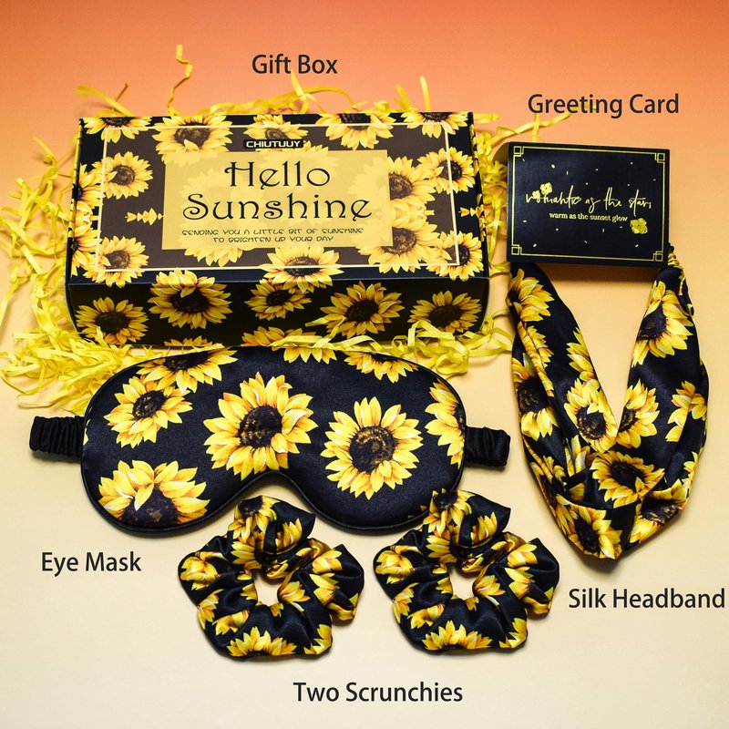 CHIUTUUY Sunflowers Print Gifts for Women, Sending Sunshine Gifts Box with Silk Headband, Hair Scrunchies and Sleep Eye Mask for Birthday, Christmas, Valentine's Day, Mother's Day Gifts Ideas