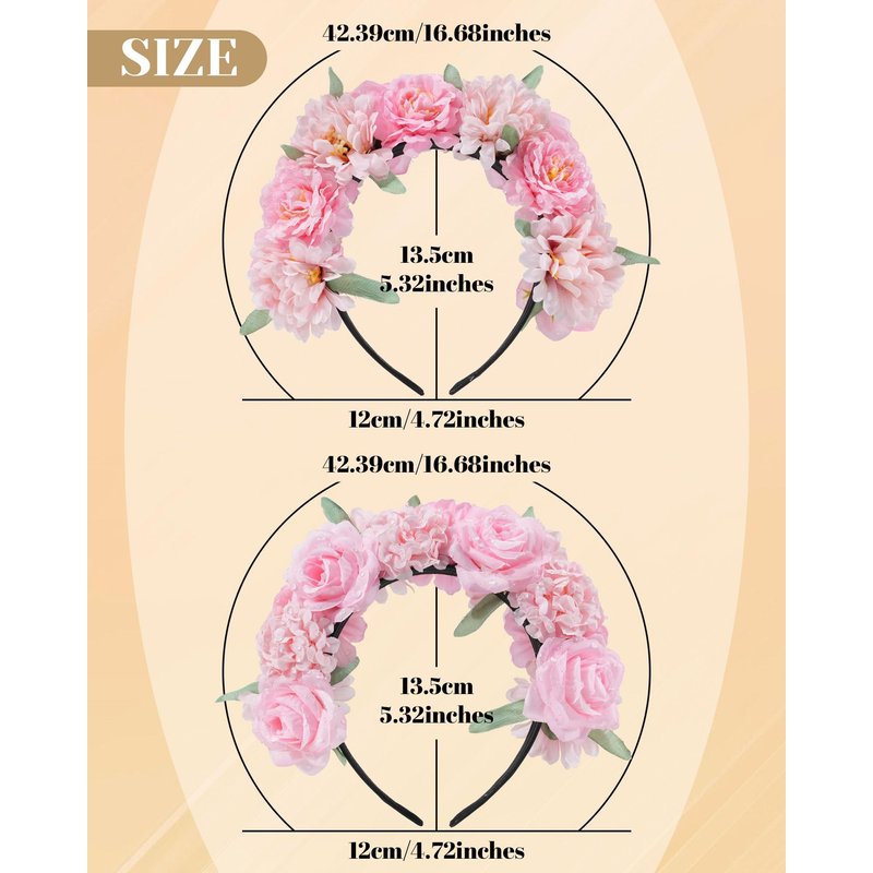 Size - The length of the flower crown is 12cm/4.72inches, very comfortable to wear.