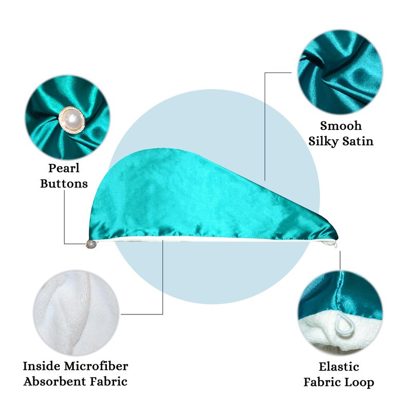 - 【SUITABLE FOR ALL HAIR TYPES】No matter what type of hair you have, our satin hair towel wrap is perfect for you. Simply place your hair inside, twist the hair wrap and attach the loop to the button to secure your hair without pulling or hooking the strands.