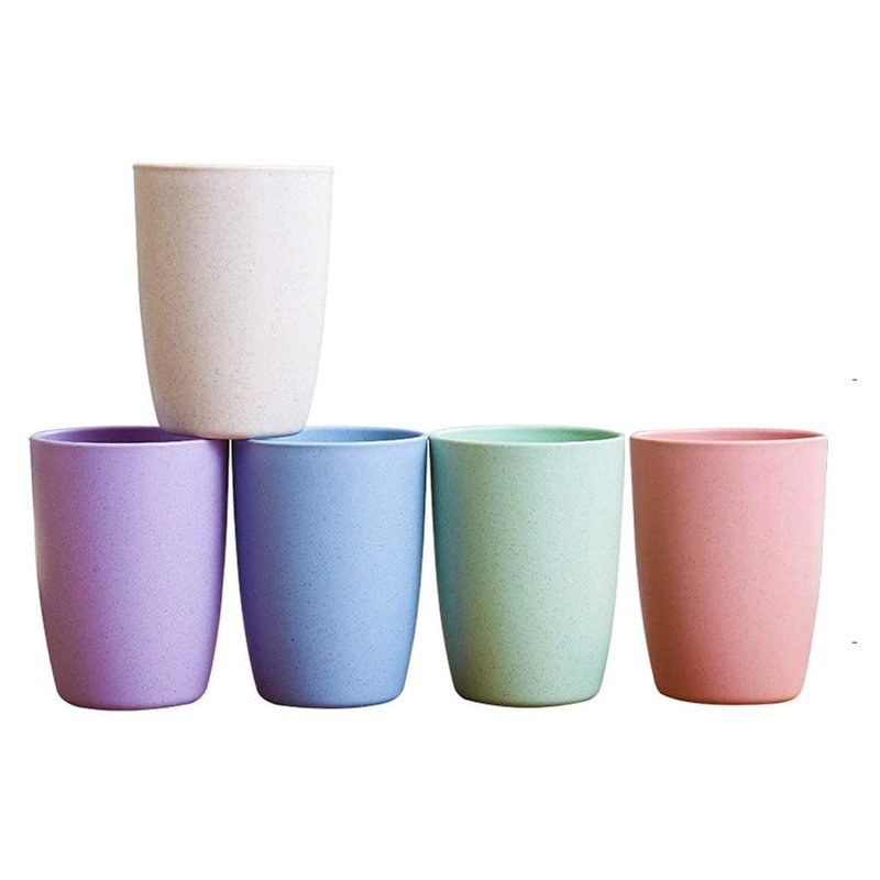 【Eco-Friendly】Wheat Cups Made from natural wheat straw + starch+ food-grade PP. No Heavy Metal,BPA Free.Break and chip resistance for carefree durability, with smooth rim, suitable for soup, noodles and cereal. No heavy metal,BPA free food-safe grade and dishwasher, microwave, fridge and freezer safe. New biodegradable material, which will self decompose in the soil. Healthy Cups set of 5(Green, Beige, Pink, Blue,purple), Designed on both esthetics and comfort, Excellent Color will not run or fade