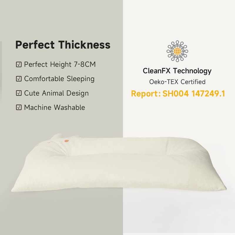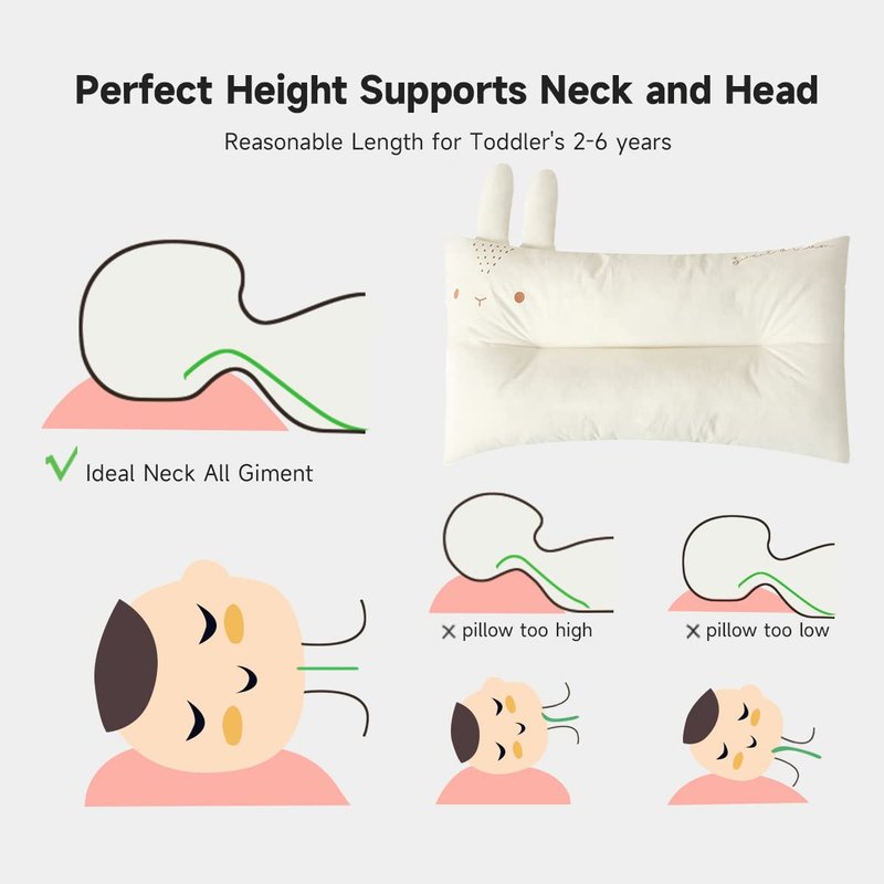 - 🐇[Perfect Size-20X12X2.7Inches] Our ergonomic pillow is recommended by pediatricians and designed to provide optimal spinal support for toddlers during sleep. Its size allows for easy rolling without repositioning, while the softness and comfort ensure a restful night's sleep.