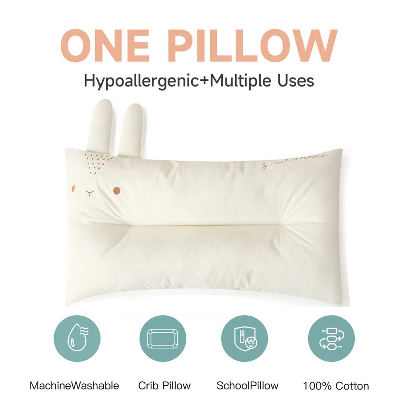 High-quality toddler pillow, 100% cotton fabric design, fit the toddler s skin and resist allergens. The cute animal appearance design brings different feelings to children and enriches the room of infants and young children.