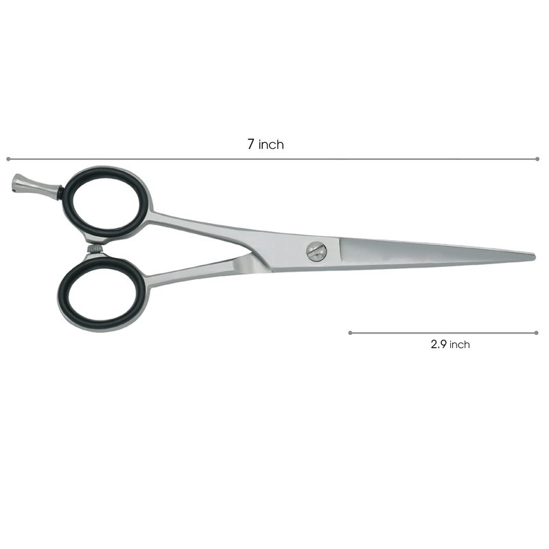 - Hair scissors includes removable rubber handle inserts to fit any thumb and finger with comfort grip.