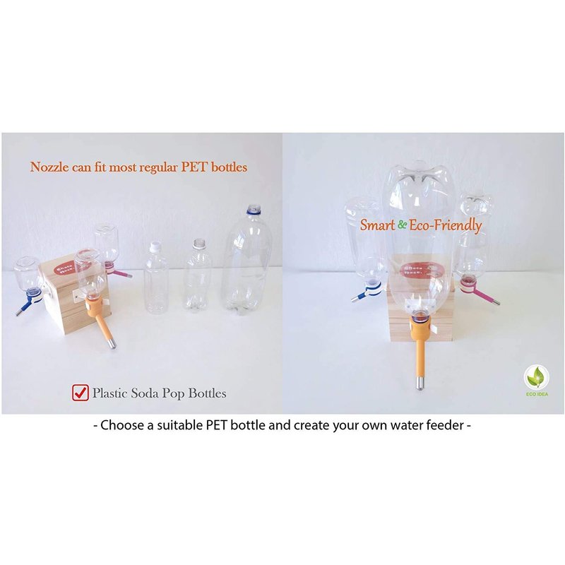 Choco Nose Watering bottles were made out of necessity. Unlike like other water bottles on the market, our BPA Free bottles have a patented leak-proof nozzle that actually works so no more wet shavings or beddings for your fine furry friends.Our bottles come in various sizes and colors to accommodate your specific pets needs and style, while our user-friendly bracket allows for either nail-on or screw-on attachment to your pet’s cage or home. Since 2014 Choco Nose has been perfecting the design of our products and we are sure you will enjoy them as much as the thousands of other people that have bought them, satisfaction is 100% guaranteed. Our mini-sized is recommended for Guinea Pigs, Ferrets, Hamsters, and Bunnies (nozzle diameter: 10mm). Our innovative design allows you to easily attach and set the position to your pet carrier, travel kennel or small animal wire cage. The water bottle can also be taken off without the bracket when you need to refill it. In addition, you can also attach the water bottle to a wall or hard surface utilizing our nail-in bracket. Our water bottles are all BPA-Free and the nozzle will fit most common PET (Soda) bottles. Like all new feeding and water devices, you will want to get your friend acquainted with how it works and be sure to rinse and refill the bottle every day to ensure your pet always has a source of clean drinking water. In order to maximize efficiency please be sure to tap the metal ball in the nozzle after refilling to ensure water comes out and creates proper flow. There will be air bubbles show when you are tapping the metal ball. The bottle should not be squeezed or crushed as this can create a poor fit and create leakage. Made in Taiwan.