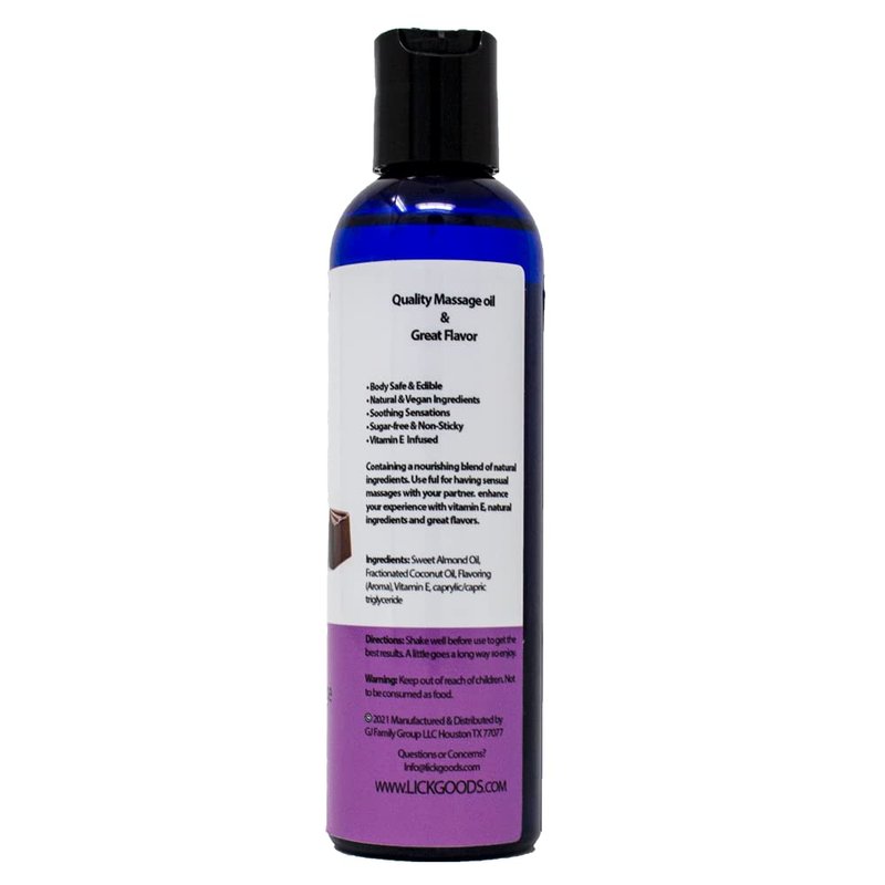 LICK Flavored Massage Oils for couples are made with natural ingredients such as sweet almond oil, coconut oil and natural flavorings. This gives them their luscious tastes and silky slickness as you draw your hands over your skin. As an added delight, our edible massaging oils are infused with Vitamin E so they soothe dry, rough or irritated skin and set the mood for enticing and tactile playtime. After your massage is concluded, your bodies will be soft, lightly aromatic and satisfied.