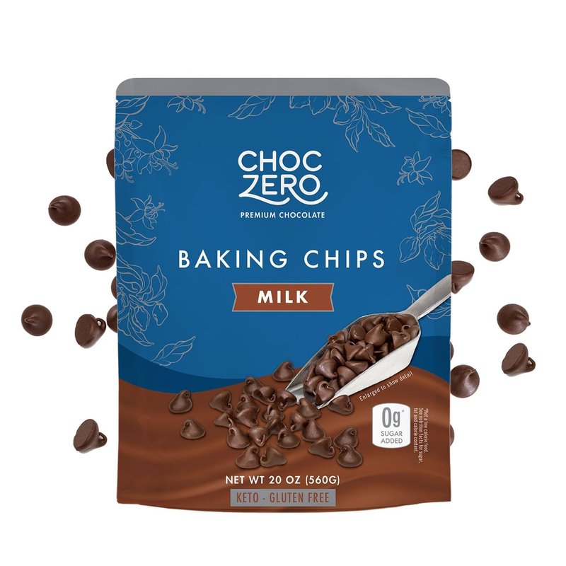 ChocZero Milk Chocolate Chips - No Sugar Added, Low Carb, Keto Friendly, Gluten Free - 20 Ounce Bulk Bag for Baking Keto Diet Cookies and Dessert