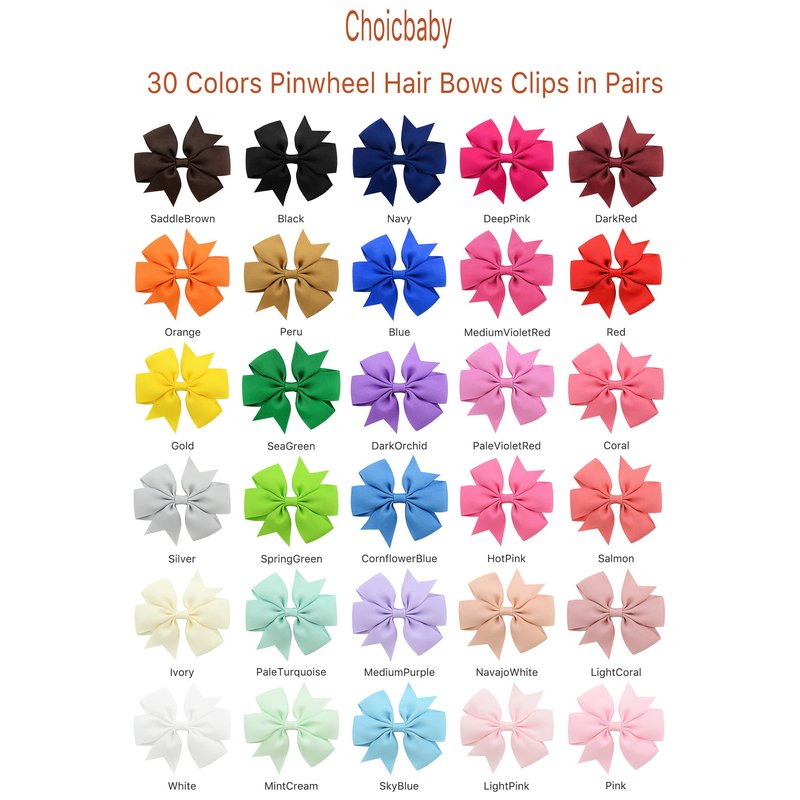 Choicbaby 60pcs 3 Inches Boutique Grosgrain Ribbon Pinwheel Hair Bows for Baby Girls, Toddler Bows Hair Clip Birthday Gifts In Pair
