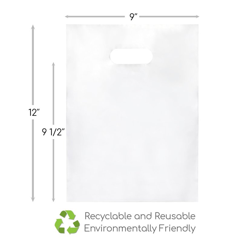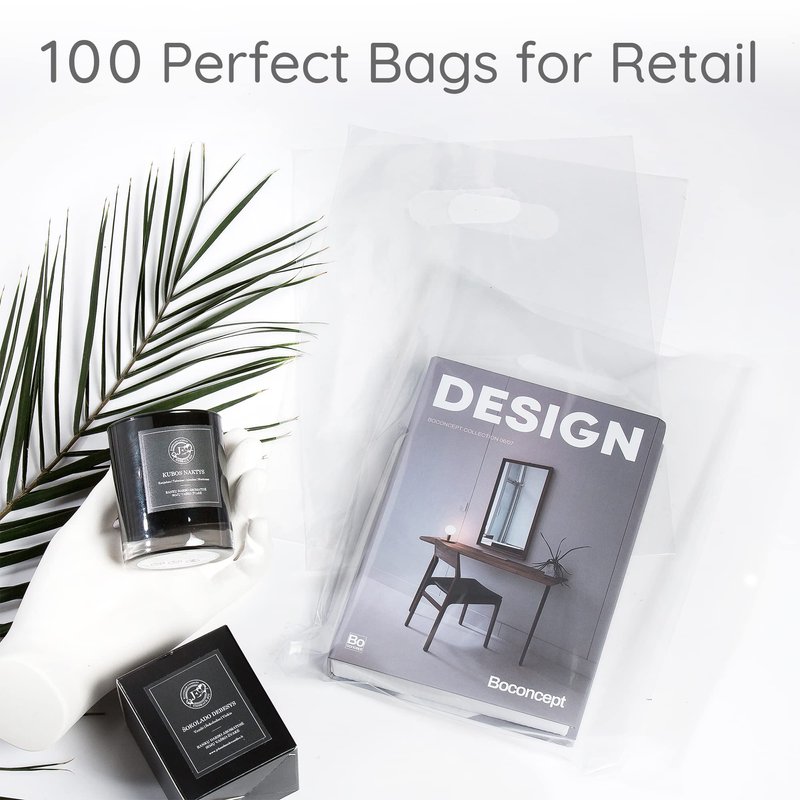- VALUE PACK – 100 Bags per pack - 100 Clear merchandise bags 9" x 12" with a glossy finish and Die-cut handles for convenience