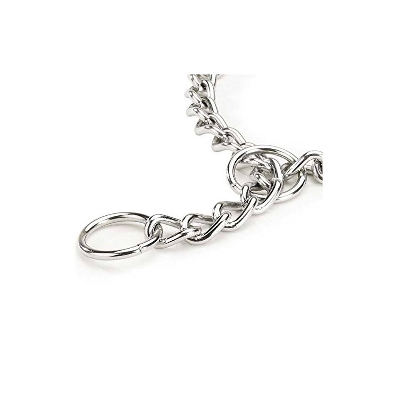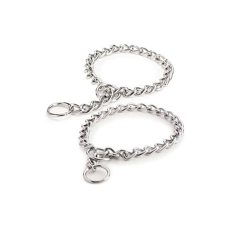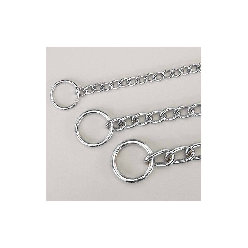 Choke Chain Dog Collars Great for Training! Our professional choke dog collars are safe and effective tools to help train your dog(s) To purchase these chains in wholesale bulk packs, please see item # 351401915350 Our high-quality Choke Chains have smooth, rounded edges for superior comfort, smooth operation, and safety. No sharp points or rough edges to chafe skin or snag fur. Ruggedly constructed of electronically welded steel for strength and chrome-plated for durability and shine. Please note: All choke chains are always measured from end of loop to end of loop. All professionals state: Please measure your dog's neck and add 2 to 4 inches for a proper fit. A choke chain that is a little long will work just fine, but a choke chain that is too short will not work at all :-)