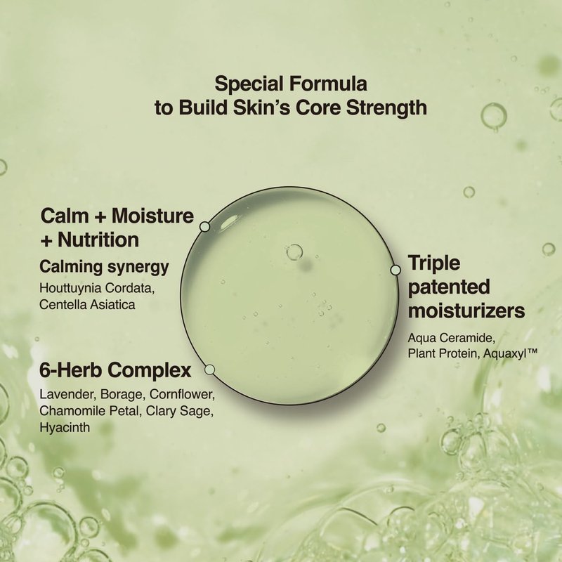 - BOTANICAL COMPLEX WITH ADVANCED MOISTURE SUPPORT: Infused with six gentle herbs—lavender, chamomile petals, hyacinth, borage, clary sage, and cornflower—combined with Aqua Ceramide and plant-based hydration boosters. Helps maintain long-lasting moisture and supports the skin’s natural barrier.