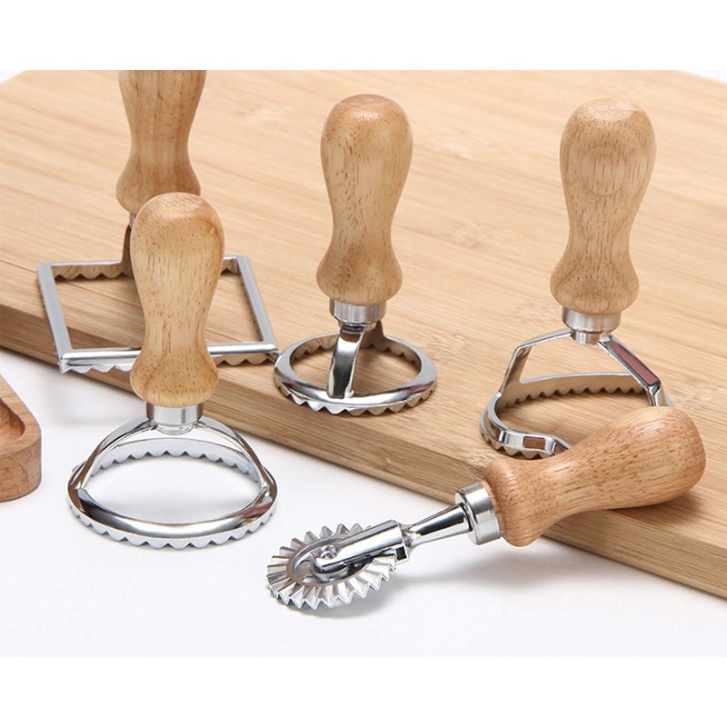 Chrider Ravioli Stamp Set (Set of 5), Ravioli Maker Cutter with Wooden Handle–for Ravioli, Pasta, Dumplings Lasagna, Pierogi, Leading Dough Cutter and Press Stamps