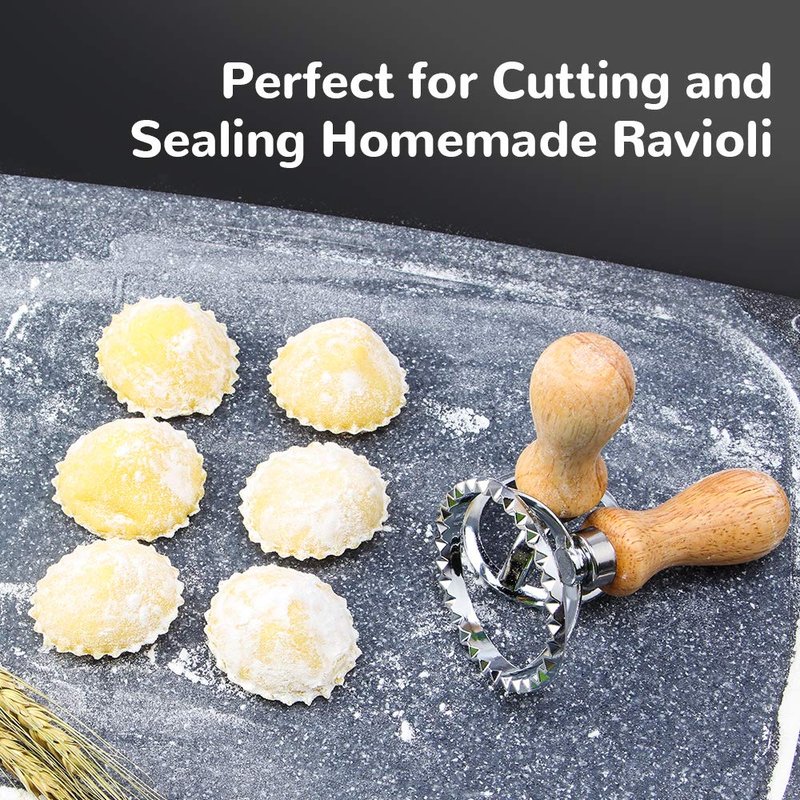 - 【EASILY & QUICK CUT 】Our classic stamps and cutting wheel make it easy for you to create delicious fresh ravioli and pasta at home. The fluted edges of the ravioli cutter can easily press out clear patterns.
