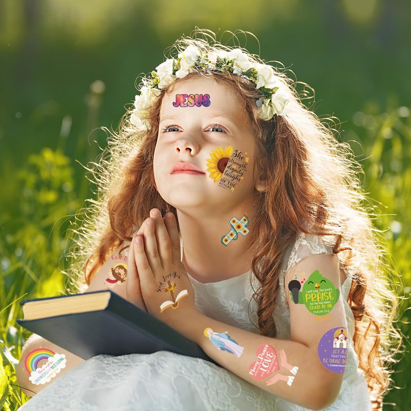 Our Christian party tattoos are the perfect goodie bag favor,Perfect Party Accessory: a fun addition to any picnic, Sports party, day in the park, or at home activity