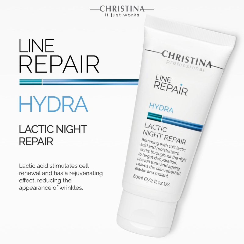 -CHRISTINA- Line Repair Hydra Night Cream with Lactic Acid | Nighttime Bliss for Skin Alignment & Rejuvenation | Elasticity Boosting, Wrinkle Reducing Night Face Cream 60ml