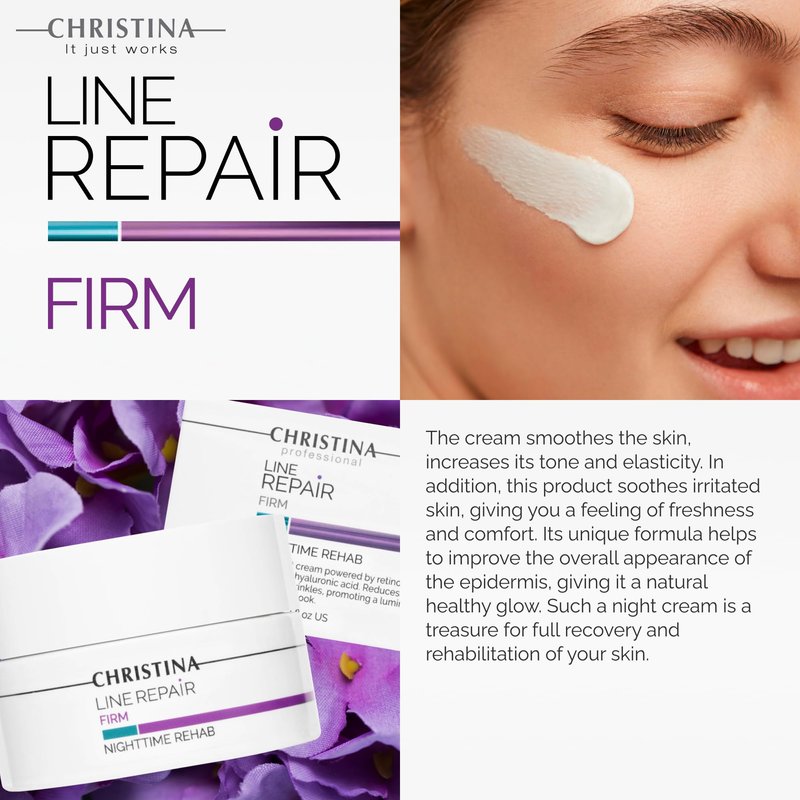 Unveil the power of Christina Line Repair Night Renewal, your ultimate solution for revitalizing normal to dry skin. This intensive night cream provides a refreshing and regenerating experience, smoothing fine lines, enhancing elasticity, and gently soothing irritated skin for restored comfort. The Skin Resilience Complex actively fights sagging and loss of elasticity with a triple blend of hyaluronic acid, ensuring your skin remains supple and firm. Specifically formulated for normal to dry skin, this transformative night cream addresses age-related changes, dehydration, signs of aging, and dryness. Experience the rejuvenating effects of our cream, delivering nutrition, enhanced elasticity, effective regeneration, and deep moisturization for a radiant complexion. Application is effortless – apply evenly, massage into your face, neck, and décolleté until fully absorbed, revealing radiant and supple skin. Tailored for ages 30-45 and 45+, our night care product is your trusted ally for a youthful complexion. Elevate your nighttime skincare routine with Christina Line Repair Night Renewal and wake up to revitalized, nourished, and beautifully transformed skin.