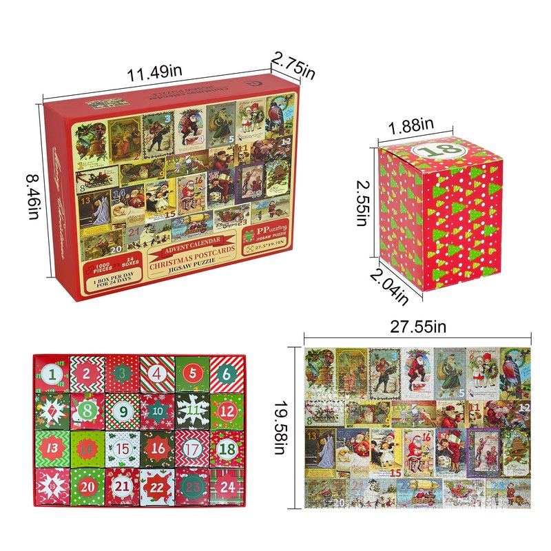 Christmas Advent Calendar Puzzle for Adult, Christmas Countdown Calendar 2024 Jigsaw Puzzle, Holiday Santa Puzzle for Adult 1000 Piece