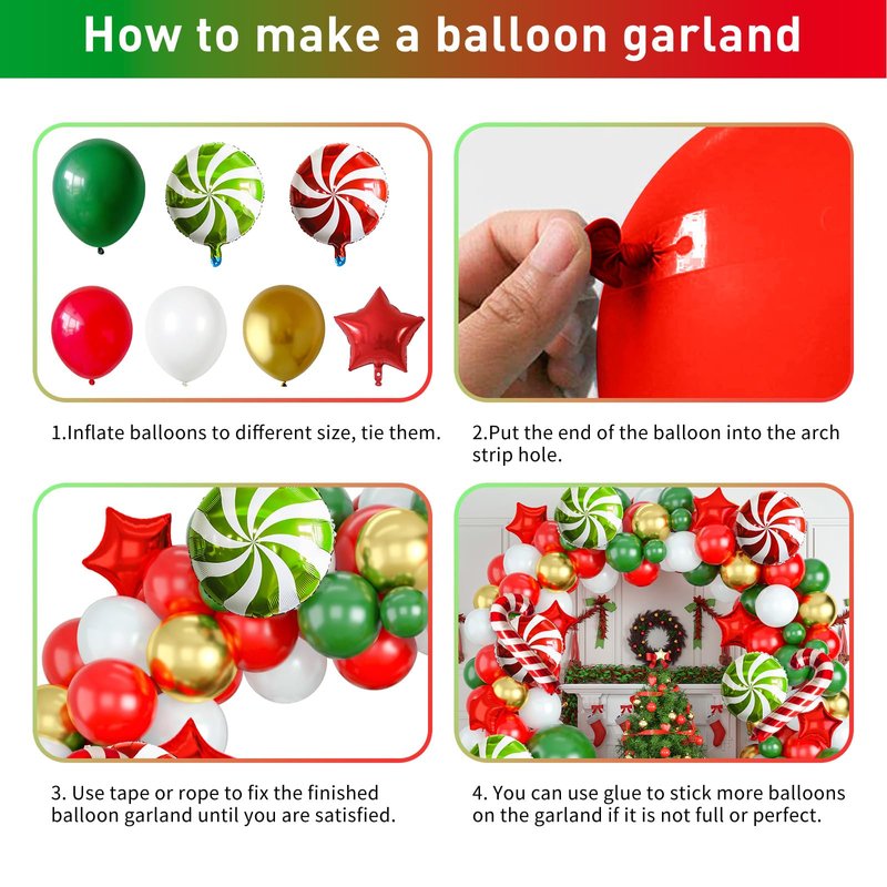 - ๐ WIDELY USE: Christmas balloon arch kit, suitable for Christmas decorations, adding a fun atmosphere to indoor or outdoor parties, courtyard outdoor indoor parties, bar decorations, stage props, theme parties and more