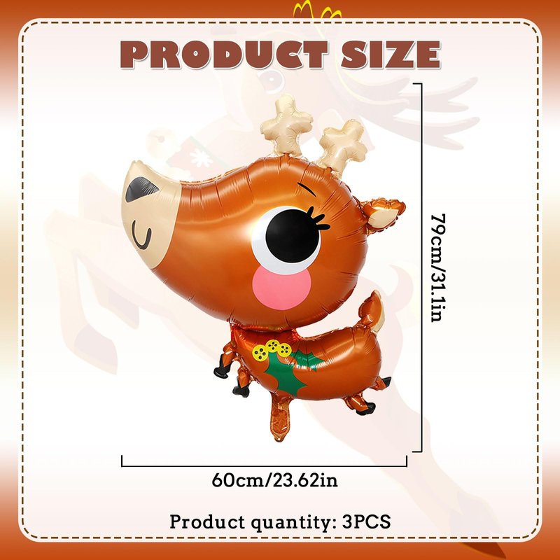 Christmas Balloons, 3pcs 31Inch Reindeer Foil Balloons for Christmas Harvest Christmas Xmas Party Birthday Party Supplies Decorations (Reindeer)