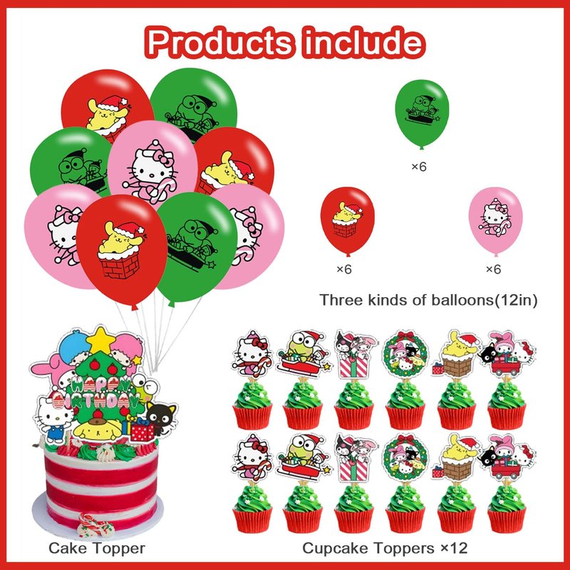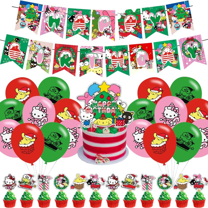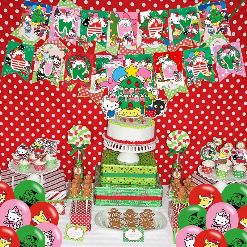 Christmas Birthday Party Decorations, Bundle of 33 Kawaii Themed Party Decorations Set includes happy birthday banner, cake topper birthday balloons for kids birthday decorations Convenient and easy to assemble, save time!