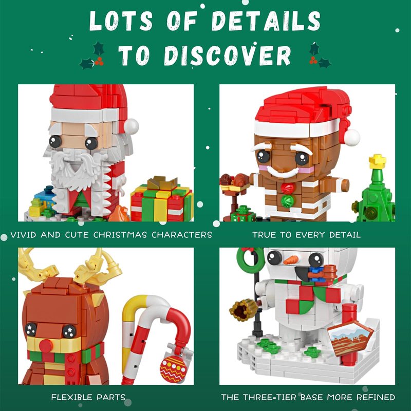 - ❄❄【Best Gift for Kids Boys and Girls】This Christmas bricks is an ideal treat for fans of building toys, gather the family and build fun memories with Christmas brickheadz! Not only can enjoy the fun of building toys, but also can be used as perfect Christmas decoration to add more festive atmosphere.