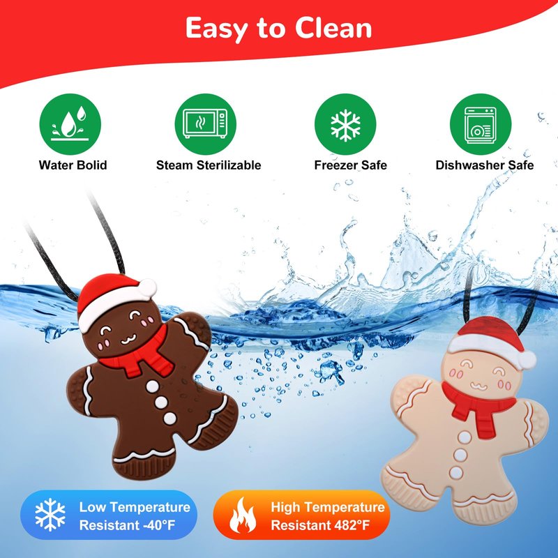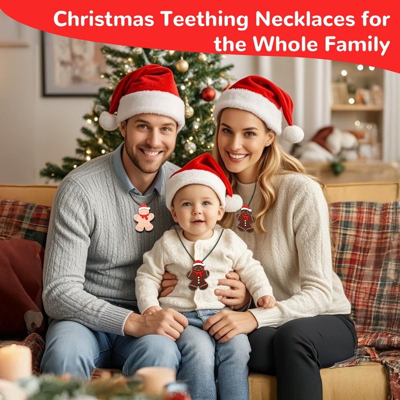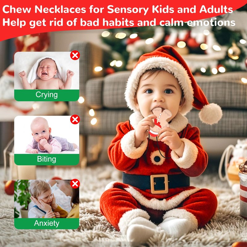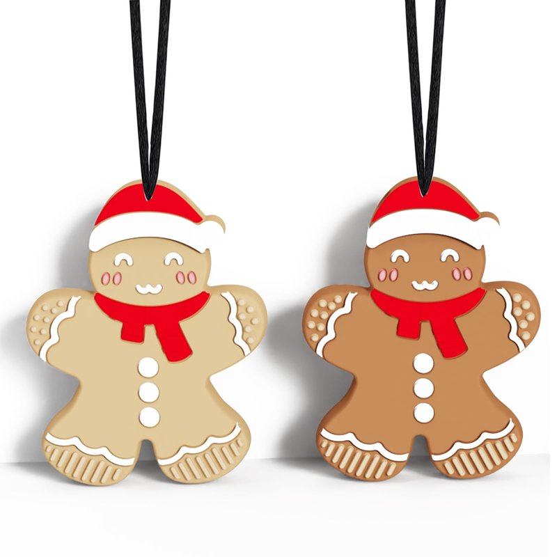 Christmas Chew Necklaces for Sensory Kids, Silicone Gingerbread Man Teething Necklace for Babies Toddlers Adults & Moms, Ideal Chewelry Toy for Autism ADHD Anxiety Fidget Relief (2Pack)