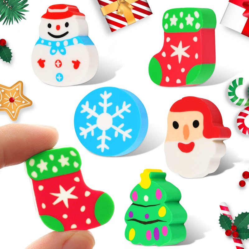 - FUNNY ERASERS STATIONERY: Bright color & cute design. Funny stationery to enhance children's learning interest. Besides, full of festive feeling, add more Christmas atmosphere.