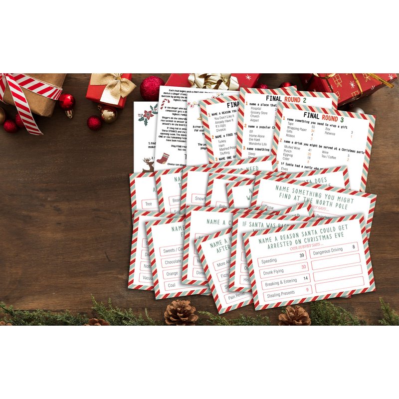 - The game is practically open ended and the rules are easy to understand, perfect for your Christmas party! Professionally printed on eco-friendly premium paper for the perfect gaming experience.