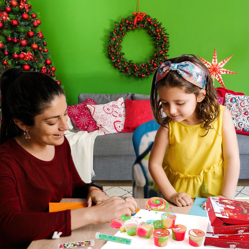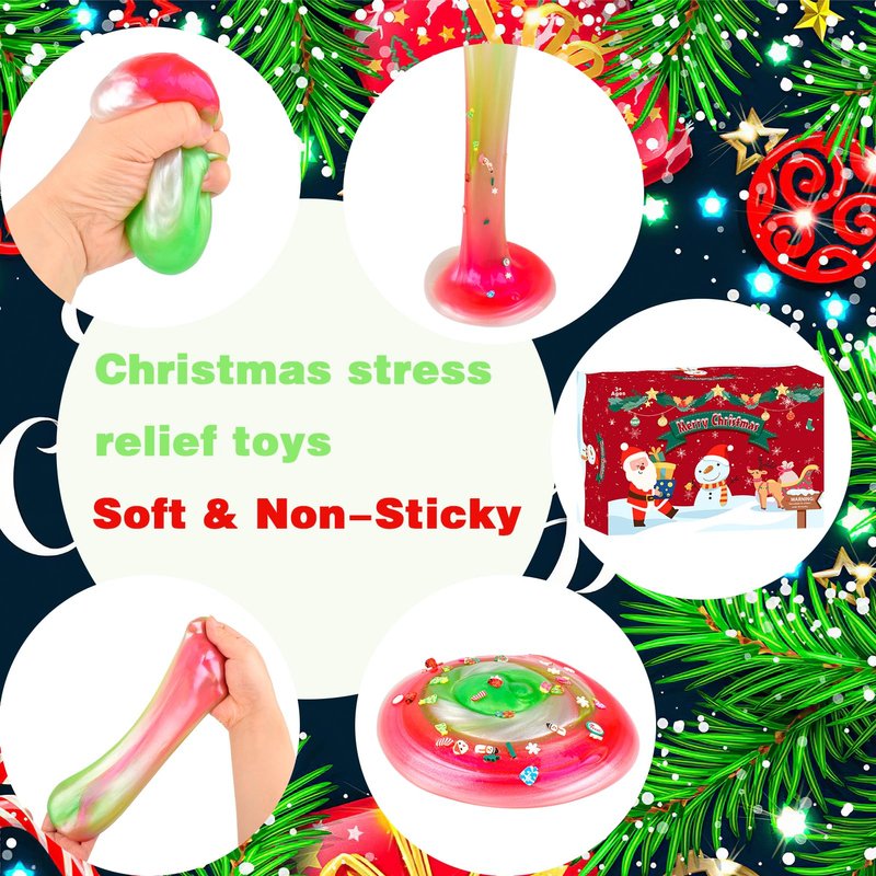 - [Mini Christmas Slime]:The slime’s classic color combination of red, green and white is full of Christmas spirit, and the Christmas greeting card it comes with sends full Christmas blessings to children