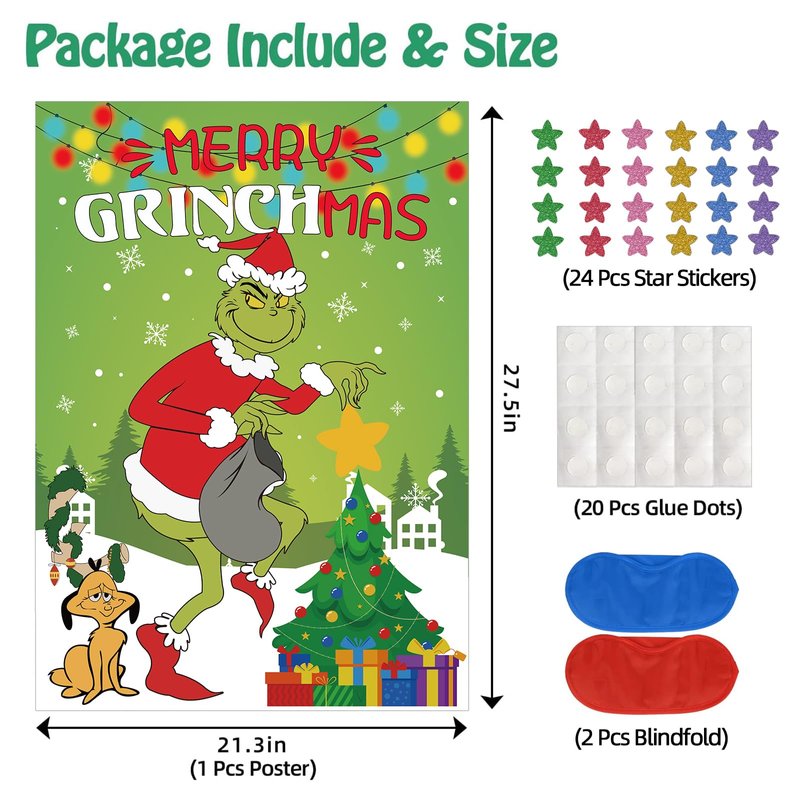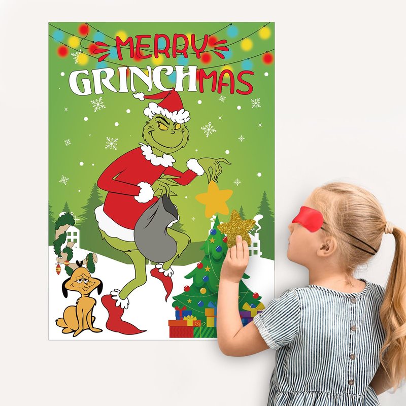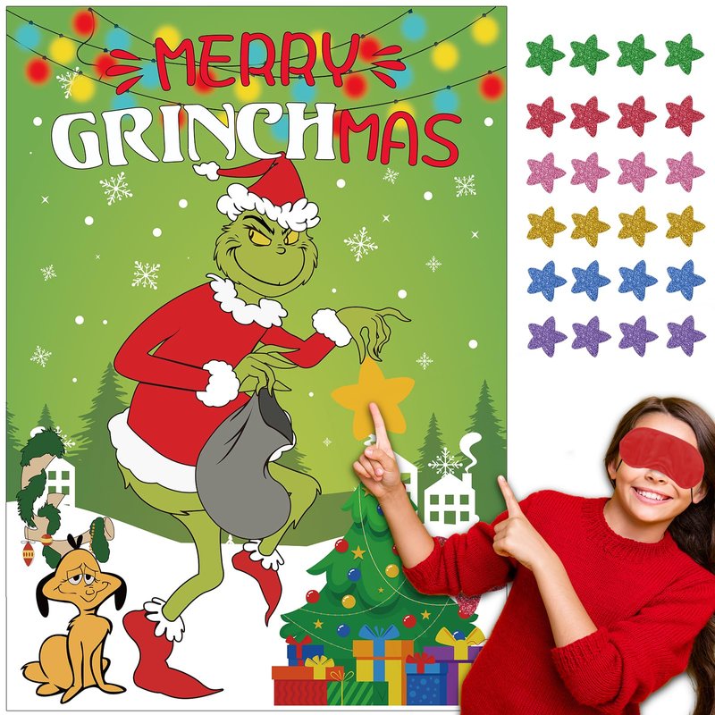 Christmas Games - Pin The Star Christmas Crafts Games for Kids Families Party, Griinch Games Party Decorations Supplies Favors, Indoor Christmas Decorations Home Decor, Xmas Kids Activities Presents