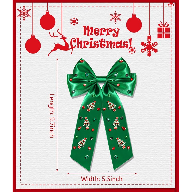 - ♥ Christmas Hair Clips for Women -- Make it a magical holiday season and add a touch of elegance to your Christmas costume with our Christmas hair clips. Features big green red hair bows accent with sparkling rhinestones and Christmas elements like snowflake, reindeer, Xmas bow, tree and wreath, these festive bows perfect for all of your Christmas parties and get-togethers. Can also match your ugly Christmas sweater, lovely Christmas pajamas, elegant Christmas dress and Christmas stockings