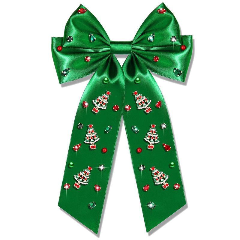 Christmas Hair Bows for Women Girls Christmas Tree Hair Bow Clips Jeweled Red Green Hair Bows Festive Holiday Hair Ribbons with Long Tail Christmas Hair Accessories Outfits Holiday Gifts (Pattern C1)