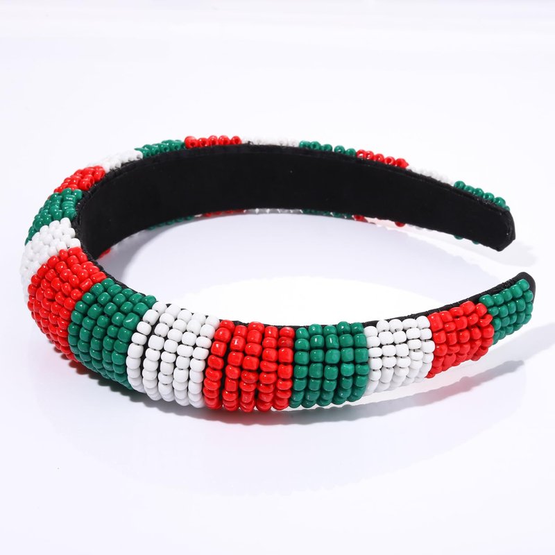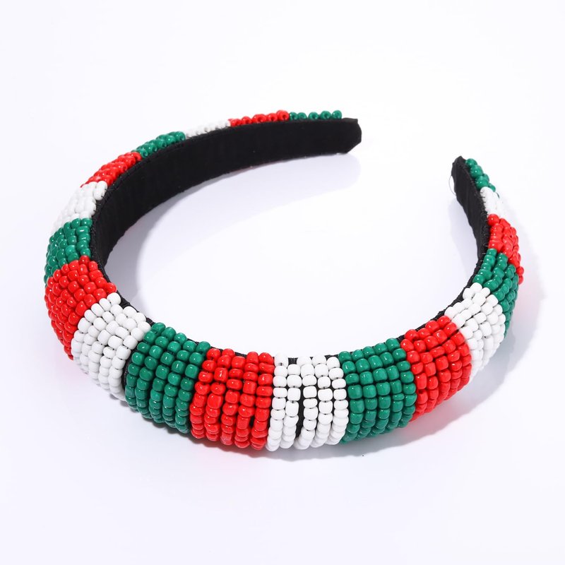 Christmas Headband for Women Red Green White Beaded Padded Headband Christmas Holiday Party Favors Hair Hoop Accessories Gifts (red green white headband)