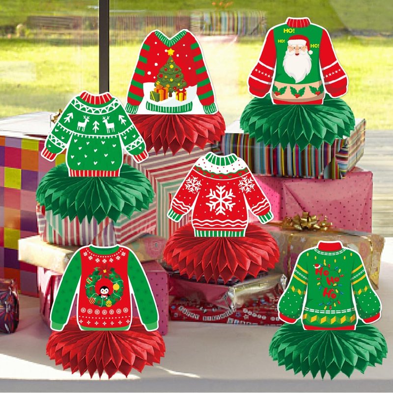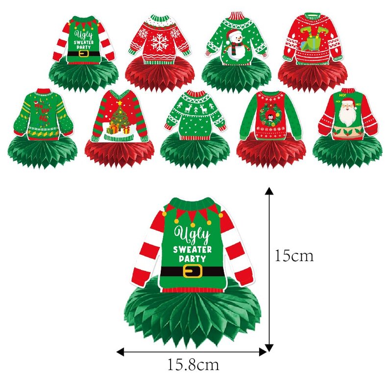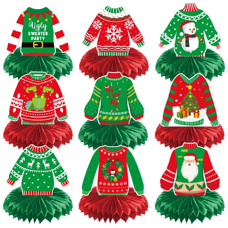 Christmas Honeycomb Centerpieces, Christmas Sweater Table Centerpieces, Ugly Christmas Sweater Party Decorations, Winter Holiday Party Supplies, Christmas Party Decorations, 9Pcs