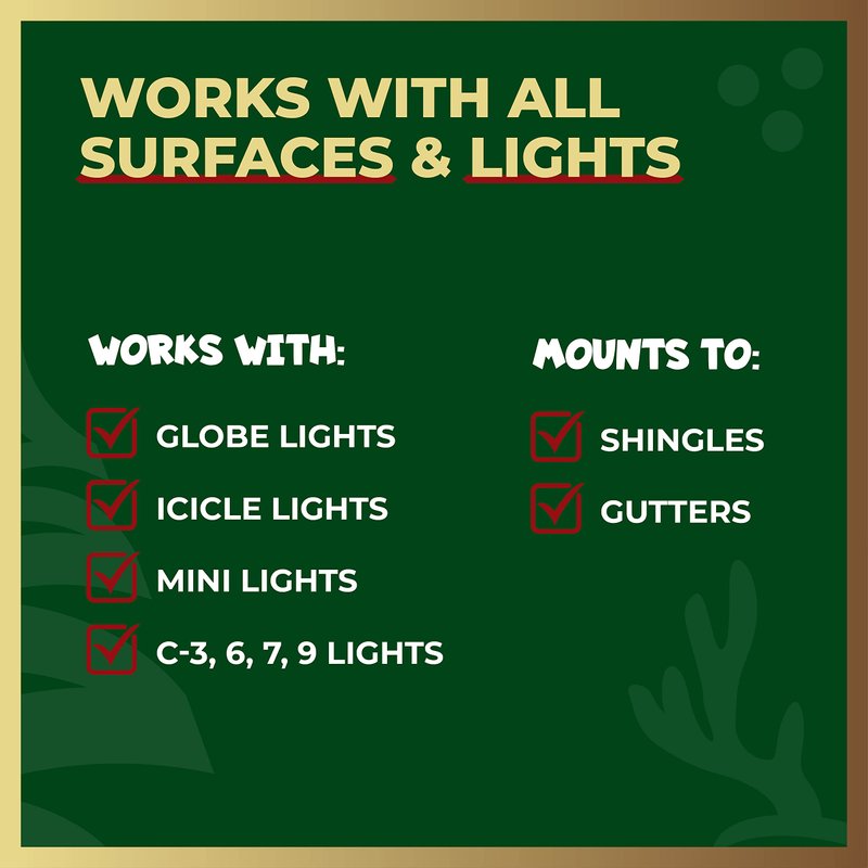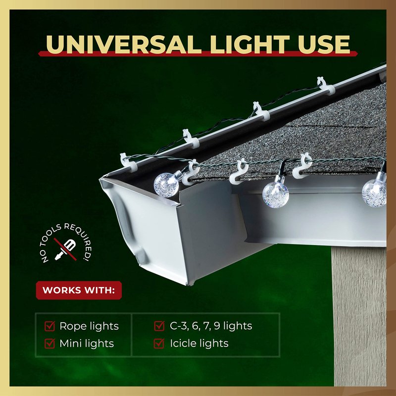 - ILLUMINATE YOUR HOUSE - Showcase your house and holiday spirit simple & hassle-free Place these light clips on gutter edges or sliding them under shingles - The clips secure tightly to surfaces all season long without damage.