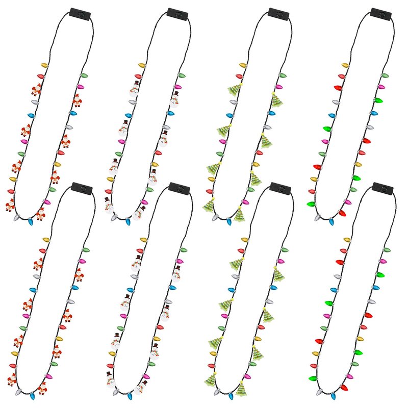 - Abundant Delights - With this set, you will receive 8 light up Christmas necklace adorned with 26 bulbs. The vibrant LED lights will create lasting memories of a colorful Christmas.