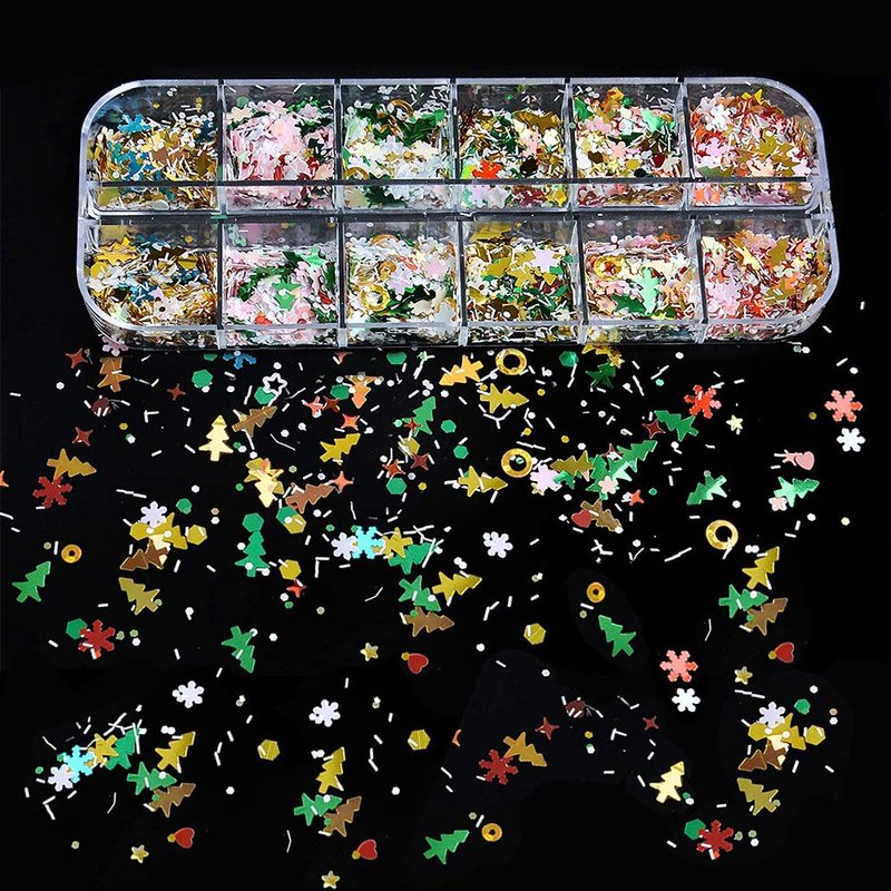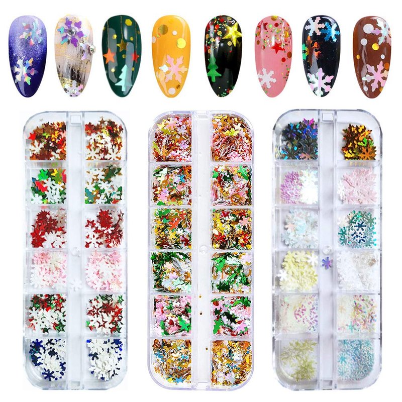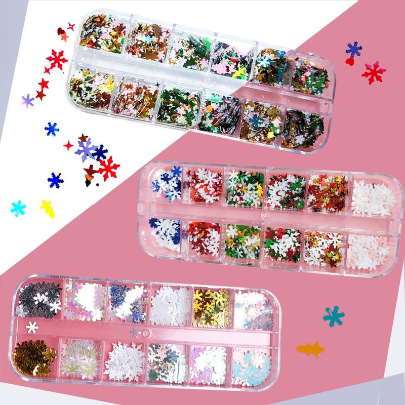 - Luxury Nail Sequins Set - Come with 36 plastic grids with different colors/patterns, you can take the most popular and newest nail art glitter home once, such as snowflake, star, heart, tree nail sequins.